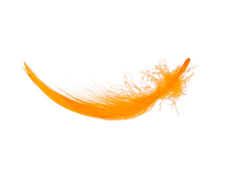 Orange feather floats gently against a serene blue sky, evoking feelings of peace, tranquility, and freedom