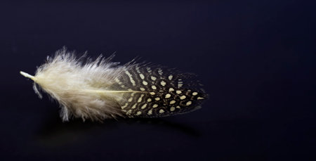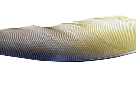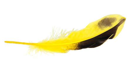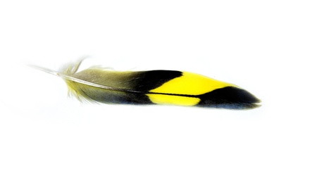 Feather. The bird's feather of yellow, black, grey, white colors is isolated