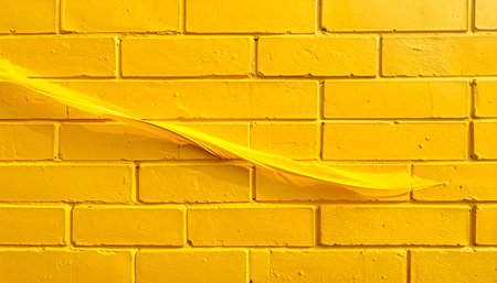 Yellow brick wall with a yellow bird feather. Yellow brick wall background
