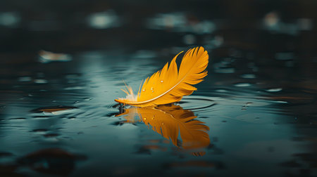 A Serene Feather Floating Gently on Calm Water, Reflecting Tranquility and Natural Beauty