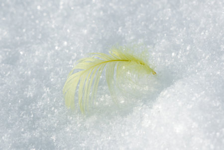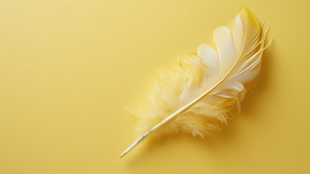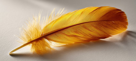 Close-Up of Yellow Feather on White Surface with Soft Shadows