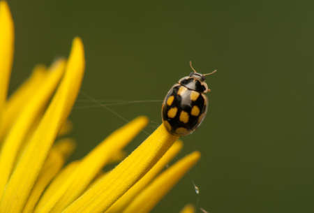 Small lady beetle, Propylea quatuordecimpunctata, black and yellow insect on a blossom rose
