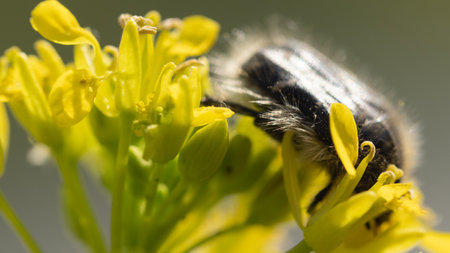 Hairy pollen beetle. Tropinota hirta, Epicometis hirta, pollinating Ranunculus, Buttercup flower