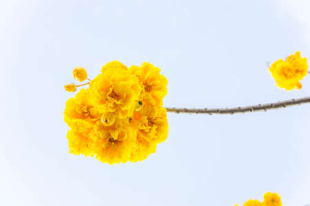 Blossom Dwarf Golden Trumpe flowers with blue sky. Tabebuia chrysotricha flowers