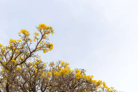 yellow flowers tree on top view sky background , yellow flowers on summer