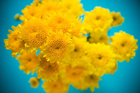 Yellow chrysanthemum bouquet on yellow background