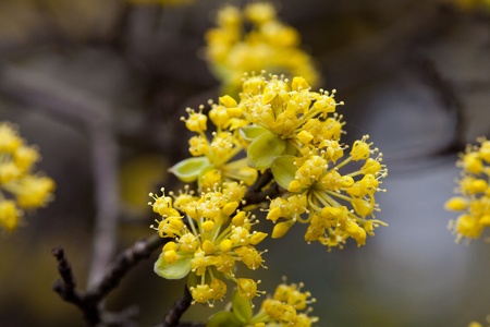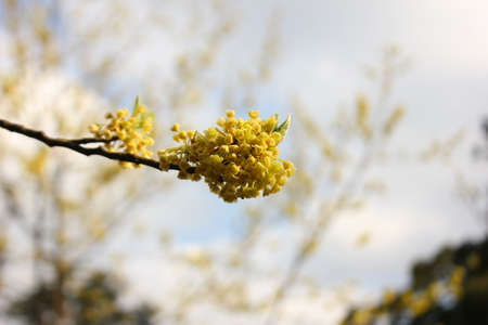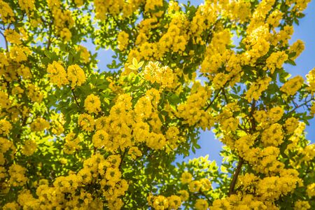 Beautiful yellow flowers on a tree in nature. Shallow depth of field.