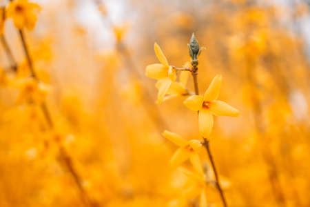 Forsythia yellow spring shrub with wonderful small flowers outdoors