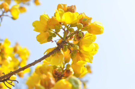 Yellow Blossom of Cassia Fistula (or Golden Shower Tree) is Blooming on the Season of Summer.