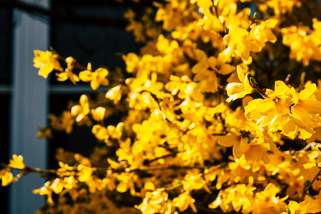 Yellow forsythia blooming in spring