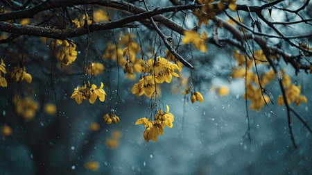 The Golden shower tree in winter, chilling air envelops, a few lingering leaves tremble, still atmosphere