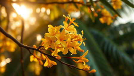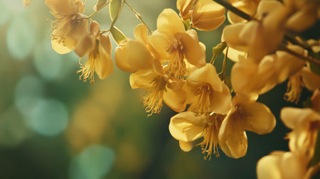 Close-up of delicate yellow flower blossoms against a soft blur background. This enchanting image captures the essence of nature's beauty and tranquility.
