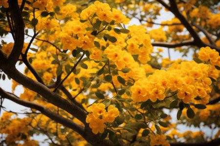 Natures Vibrant Canvas: The Majestic Tree adorned with Yellow Flowers, A Close-Up View