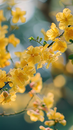 Close-up of delicate yellow flower blossoms against a soft blur background. This enchanting image captures the essence of nature's beauty and tranquility.