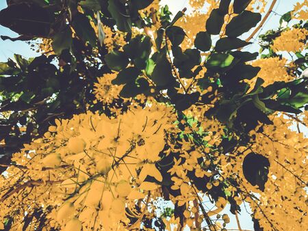 The blooms of Esala. The beautiful golden yellow flowers of the tree were in full bloom. Purging Cassia ( Cassis fistula Linn ) national flower of Thailand