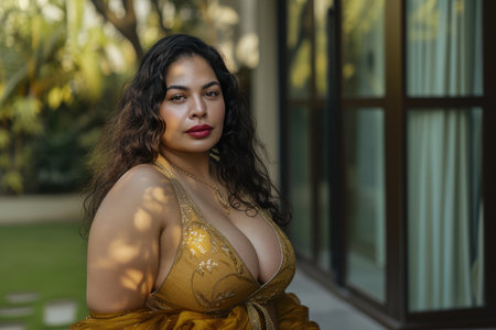 Luxury Lifestyle: Indian Woman Radiating Confidence in Modern Yard