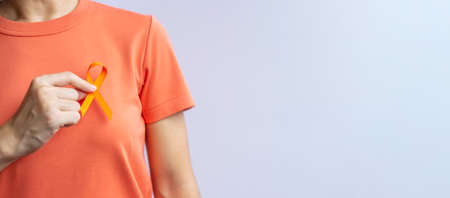Orange Ribbon for Leukemia, Kidney cancer day, world Multiple Sclerosis, CRPS, Self Injury Awareness month. Healthcare and word cancer day concept