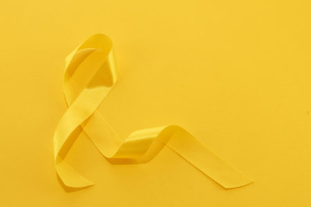 yellow ribbon symbolizing cancer in children top view