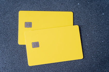 Yellow credit card with chip. Bank cards mockup