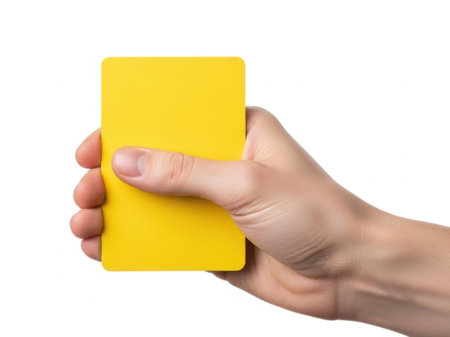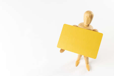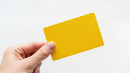 Hand holding yellow card isolated on white background