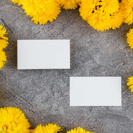 Preparation for creation of a corporate style. Business card and Blank Tag. Flower design, bright yellow color. Mockup.