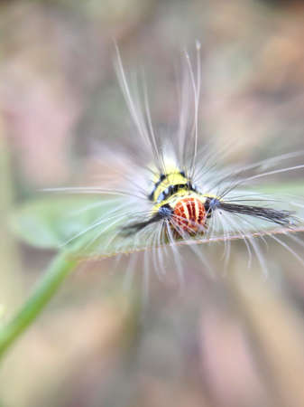 Caterpillar, The worm-shaped worm with yellow hairs on black background, animal insects,Macro view, select focus.