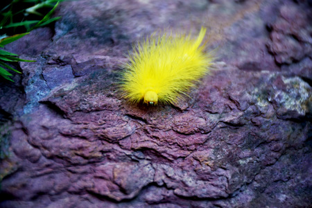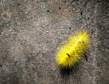 Yellow slug worm, Calliteara horsfieldii climb on cement floor.