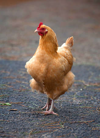 A chicken brown , Chicken breeder,Eating grass on the farm.