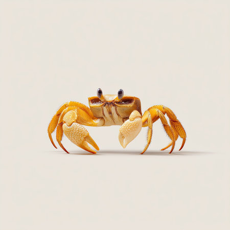 A stunning close-up of a vibrant orange crab with intricate details, captured against a soft neutral background, ideal for marine and wildlife photography projects.