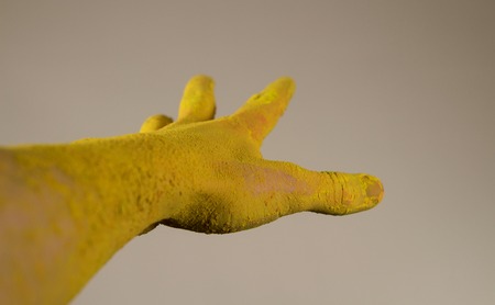 Hand dirty in yellow paint holi