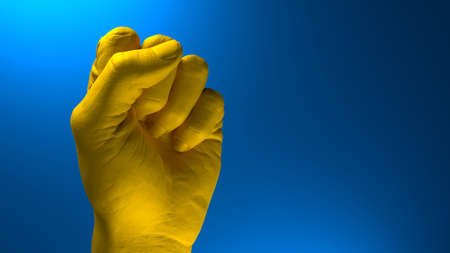 Fist in colors of Ukrainian Flag raised to fight and resist russian agression