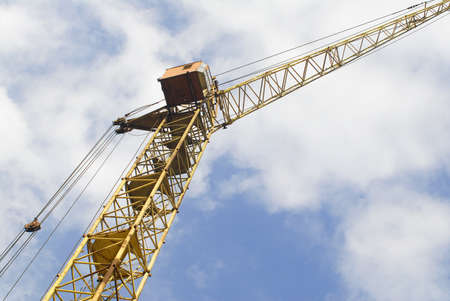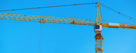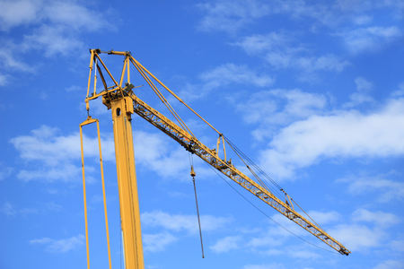 Yellow crane and blue sky on background