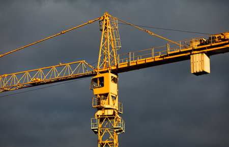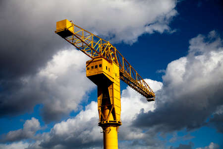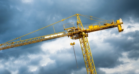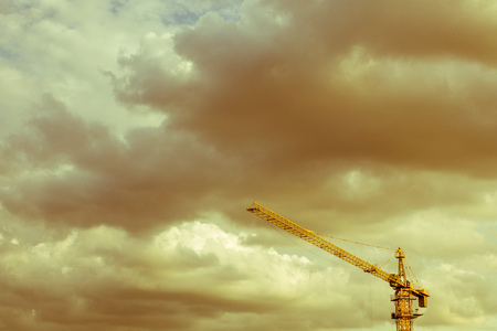 Industrial background with yellow construction crane over amazing sky