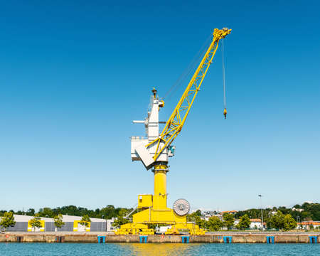 Yellow crane at Bayonne Port on the Adour River in France