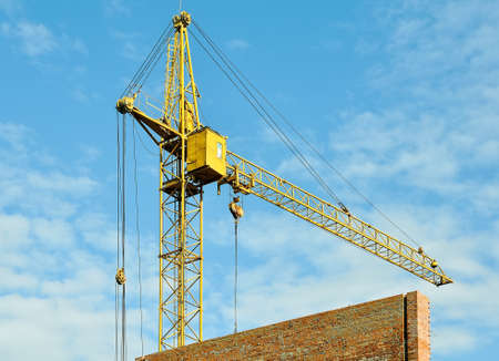 yellow crane on the background of the blue sky