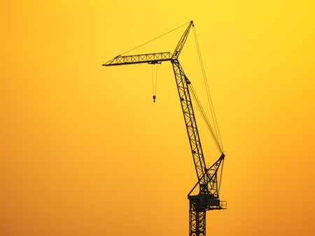 silhouette of construction crane on sunset sky background