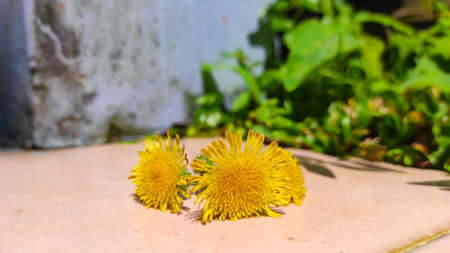 Wild flowers grow in the yard of the house in the Cikancung area, Indonesia