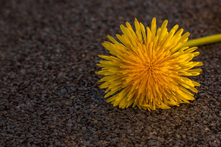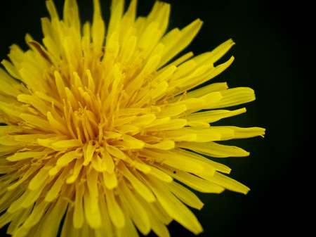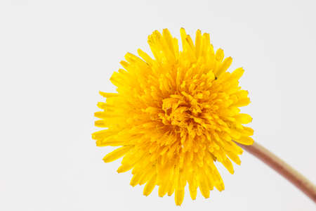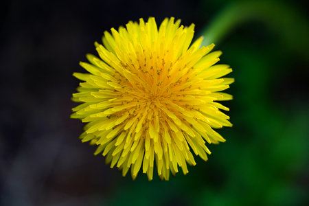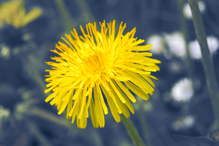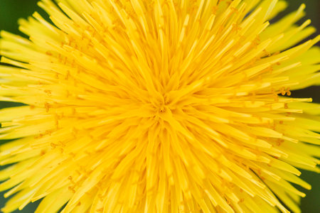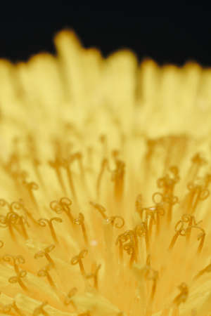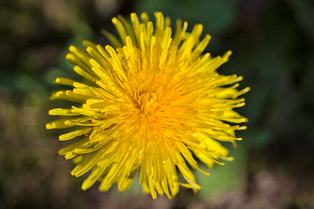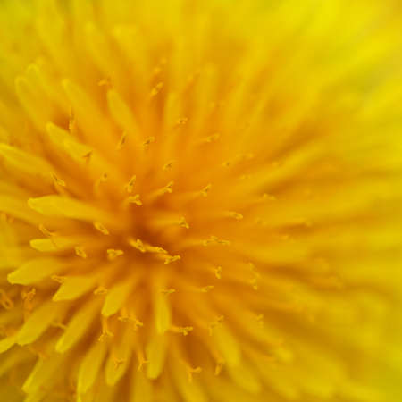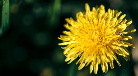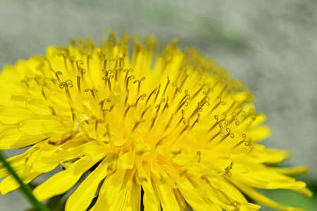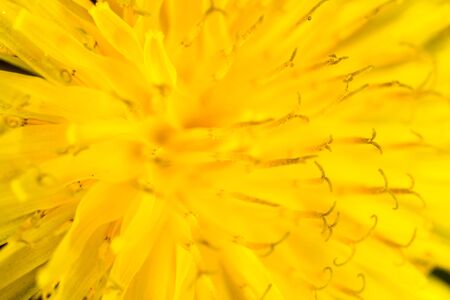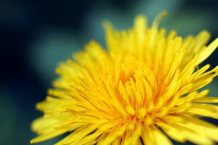 Macro photo of bright yellow dandelion. Closeup shallow focus