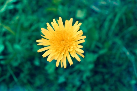 Yellow flower. Close-up photo of yellow dandelion on grass background.