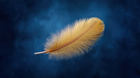 a yellow feather on a blue background