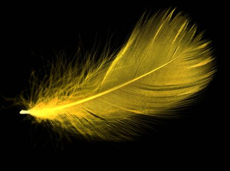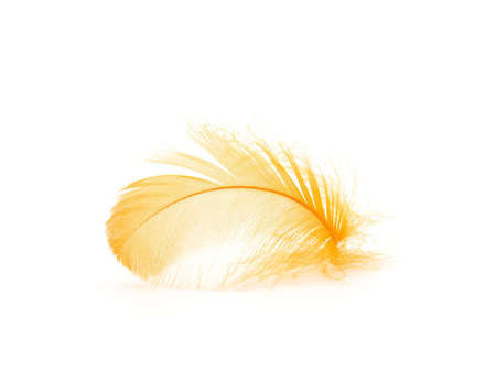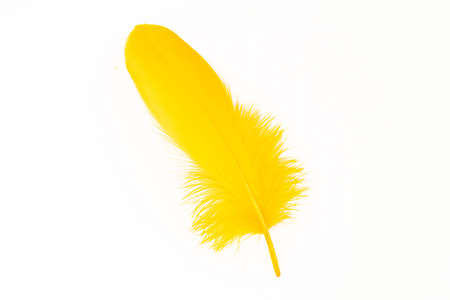 Yellow fluffy elegance feather isolated on the white background