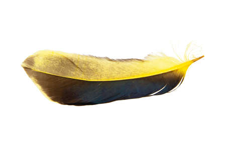 Yellow feather isolated on a white background