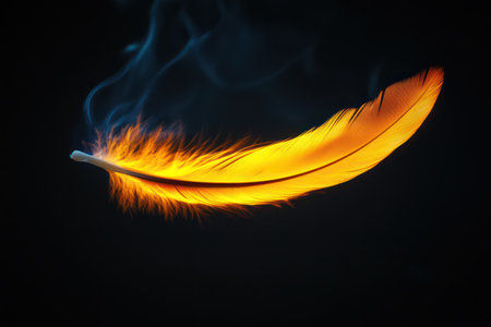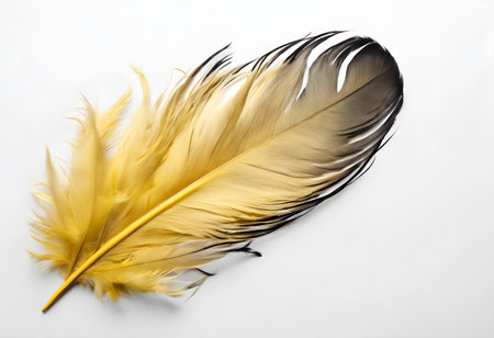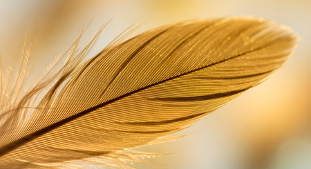 Golden feather with intricate details creating a mesmerizing pattern, ideal for nature, wildlife, and design projects