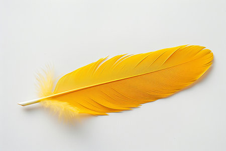 Close-Up of Yellow Feather on White Surface with Soft Shadows