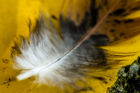 Yellow feather as a background. close-up