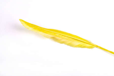 Decorative yellow feather isolated on the white background
