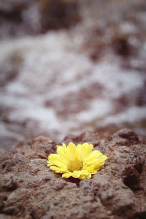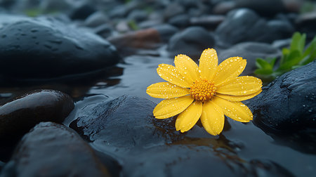Generative AI Image of Yellow Daisy Flower on Wet Stone after Rain