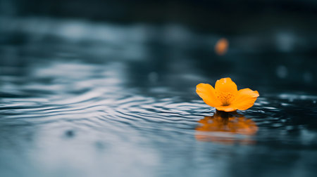 Yellow flower on the water with ripples and drops of dew