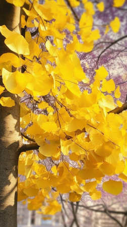 Generative AI : Ginkgo biloba yellow foliage in autumn