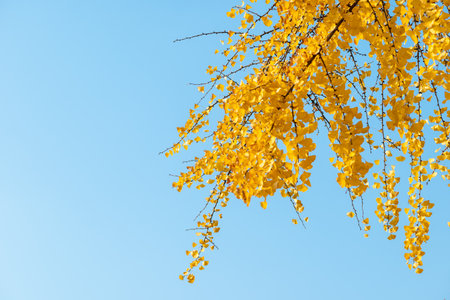 Yellow Ginkgo biloba in clear weather in late autumn